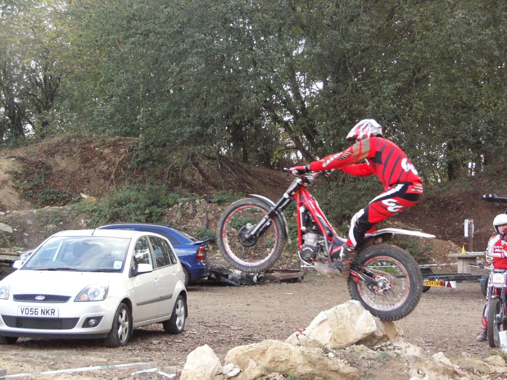 Adam Colburn, who came a close second, said a fair few people knew the pic is of Lee Hassell who regularly makes the journey from Wessex Centre to ride in Western trials when the calendar permits. Adam said it might take a keener eye to spot Lee's dad, Dean at the bottom right side of the photo looking decidedly bored watching Lee undertake his new role, which is as a VOSA Tester: "New regulations state that all small to medium sized cars get a simulated "bike entering the oncoming traffic without warning test". This test simulates a motorcycle ploughing into the front nearside of the vehicle and impacting at realistic force to examine the structural efficiency of the aforementioned vehicle." And the number plate almost spells VOSA. Good spot Adam.