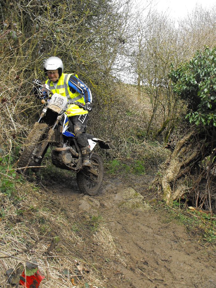 Rob Faulkner proved a Pampera isn't necessarily essential for a good performance, by taking his late 1970s Yamaha DT175 to fourth place. He and Dave Renham were tied with Jason Bendall after Withington but Faulkner's dab at the final Hazelton group relegated him from the final podium spot. Renham took a dab at the muddy exit to Boyd's and his special test failure left him in fifth.