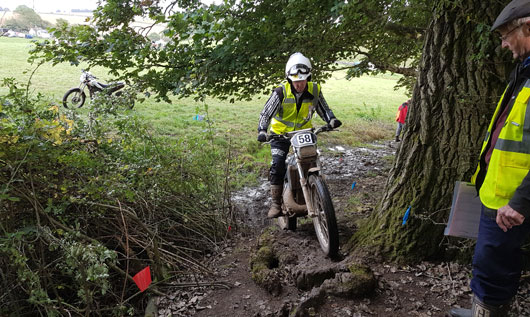 Second placed Martin Gilbert dropped a dab in front of Ben Williams in Humblebee Woods, Sudeley where a hop over a broken tree trunk was followed by a sharp turn up a short steep bank, then another at Andrew Luff�s very steep climb out of a muddy gully with little run-up, before dropping three in the penultimate section observed by birthday boy Goff Hannam..