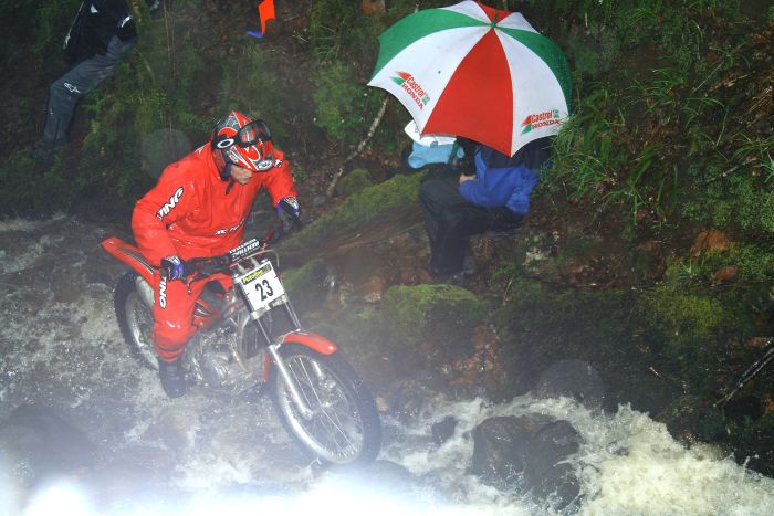 May 6 (Day 3), update 2 - Results are in and the water has played a big part in proceedings. Joe Bendall's bike misfired, while Henry has, like many others, been manhandling the Montesa (I know what that's like! - Ed.) to keep the water away from the motor in stream crossings. Henry is in 161st place on 209 after dropping 73 today - but Brett King's had a pretty good day by the look of it, losing 49 to take him to 211 and 163rd place. Jo lost 76, putting his 3 X 50 mark loss for missing sections behind him yesterday. He's in 236th on 390 but he's not far off his brother when the hefty penalty is taken in to account. John Luff has slipped back a little but he's in the trial. Which is more than can be said for Craig Talbot, who's down as a retirement. Water in the engine looks to have forced him out. We'll see tomorrow whether he can take to the start.