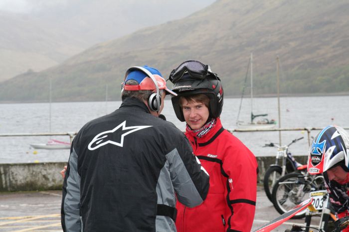 "Saturday was far from easy, however John did have the benefit of being very late, and a new tyre. He had a good day, and managed to win his coveted first class, and by some way in the end. There were a few problems, the hand and wrist were horrible, the rain still came down, but the major concern was getting to Leanachan, the last fuel stop, and finding there was no 4 stroke fuel left.