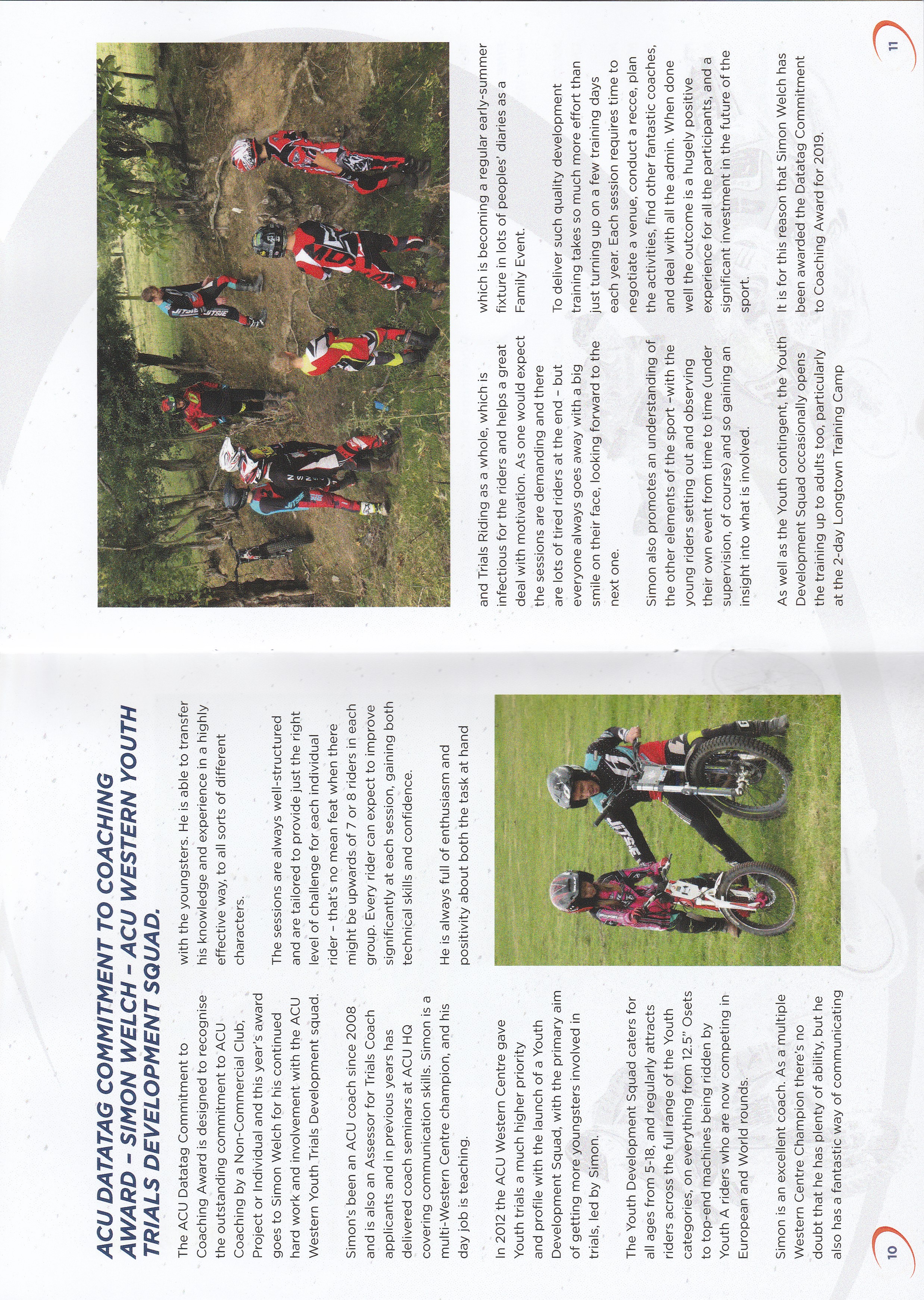 Many volunteers donate time and money to the YDS but without a doubt the squad would not be the success that it is without Simon's drive, and riding and teaching expertise. This recognition from the ACU is richly deserved.